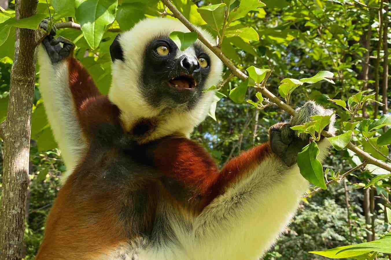 Yet despite being such fine-tuned leaf-eating machines, sifakas can eat more than just leaves. They eat lots of fruits when those are in season and will also happily munch on flowers.