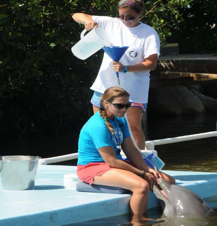 Like humans present their arms for a blood draw, the dolphins at these facilities voluntarily raise their tail fins out of the water so their caregivers can collect blood or urine as part of their regular checkups.